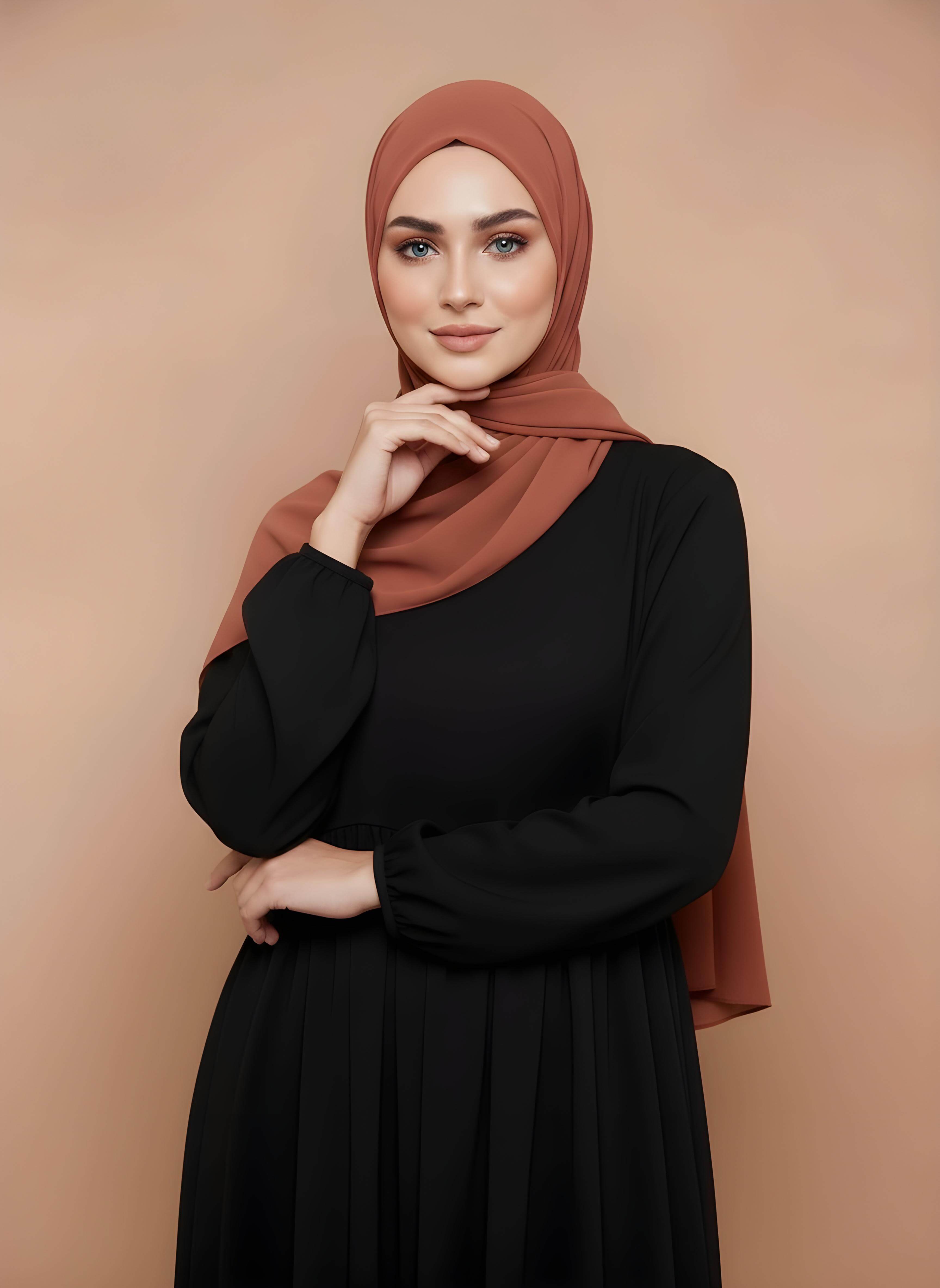 The Chess Nut Draped Chiffon Hijab is a unique accessory that combines elegance with functionality, ideal for modern hijabis."