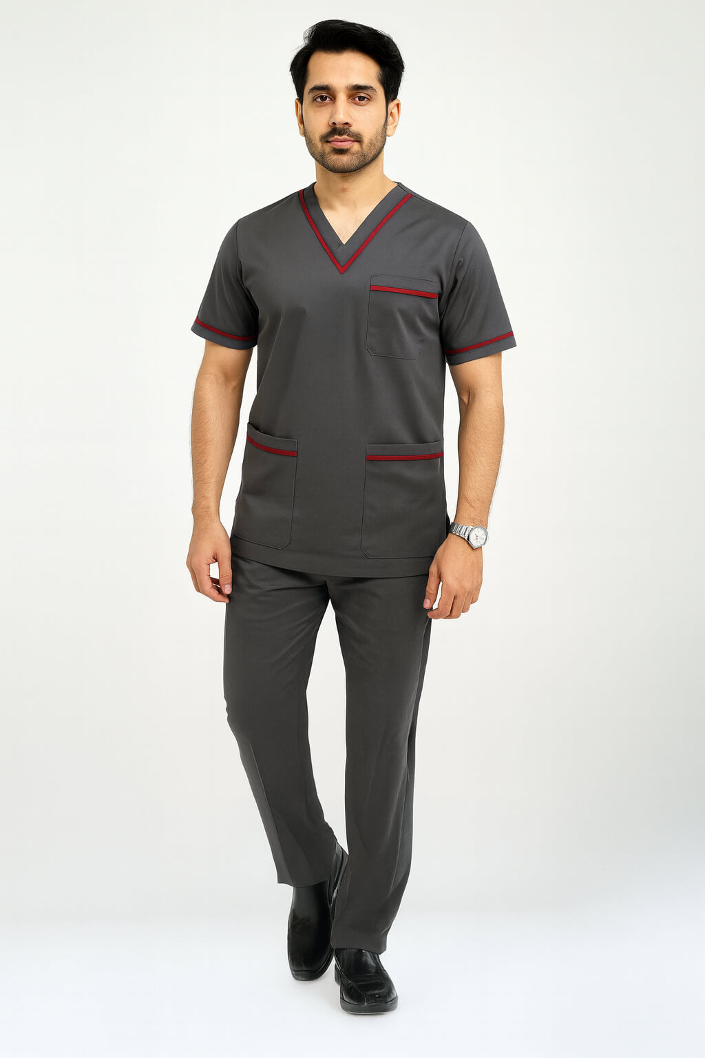 Men’s Brink medical scrubs in Dark Grey. Lightweight, breathable and made for long shifts. Pick your size and fabric.
