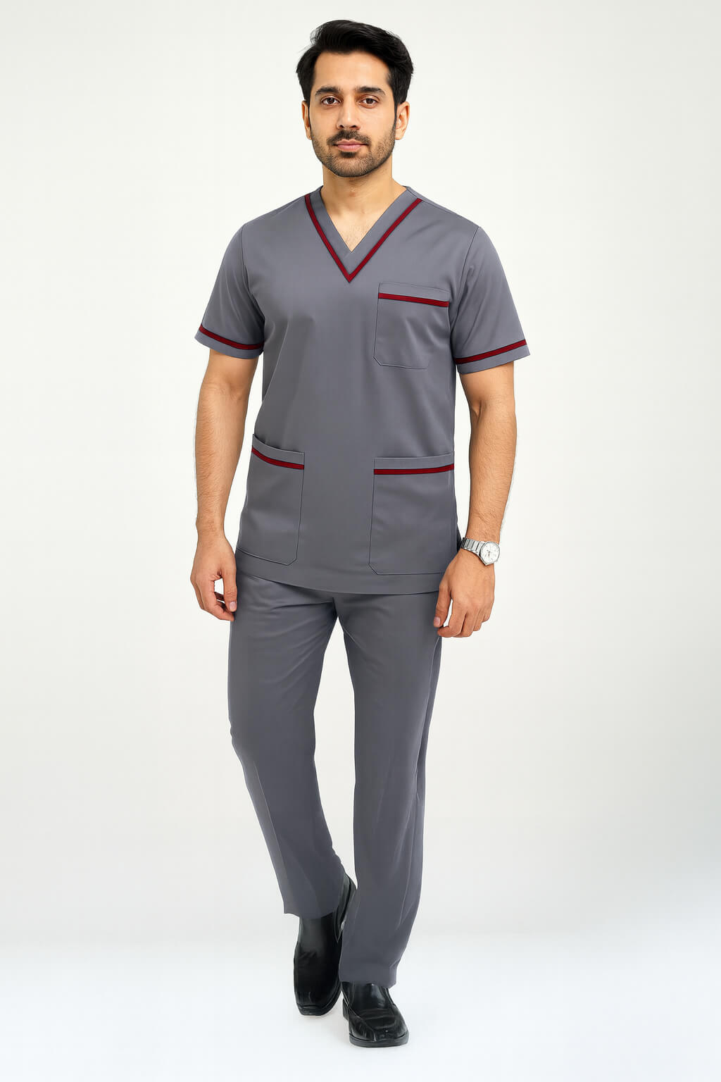 Men’s Brink medical scrubs in Mid Grey. Lightweight, breathable and made for long shifts. Pick your size and fabric.