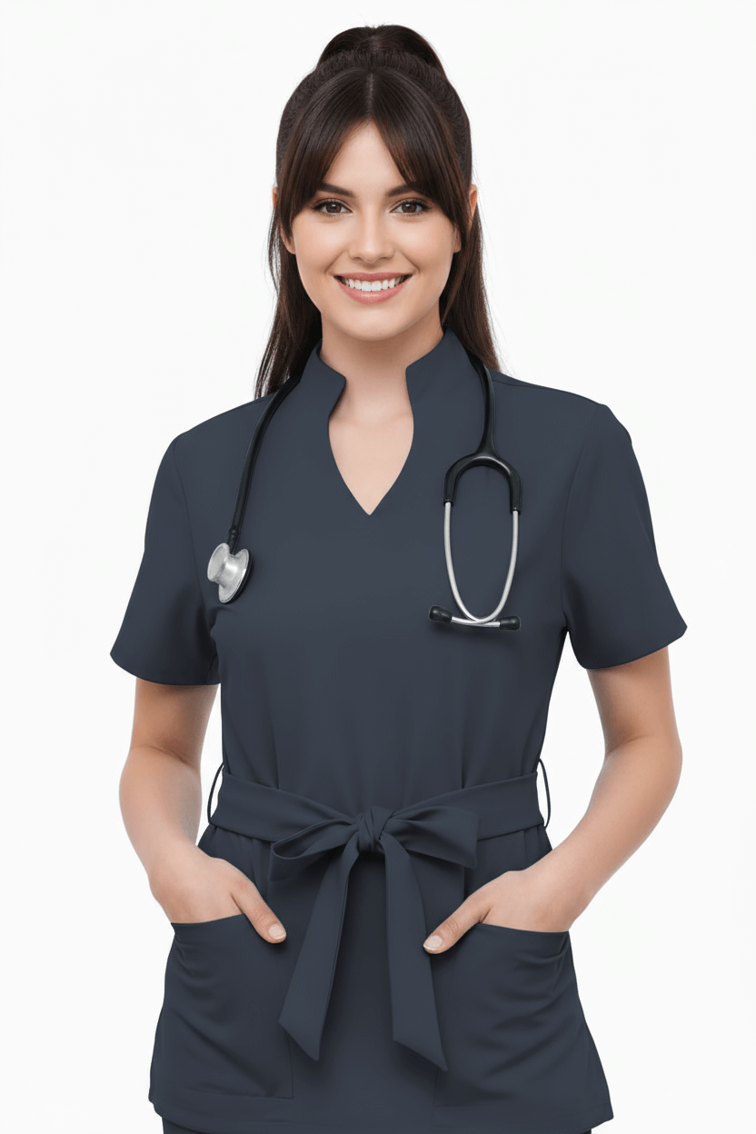 Women’s Nova medical scrubs in Dark Slate Blue. Lightweight, breathable and made for long shifts. Choose your size and fabric.