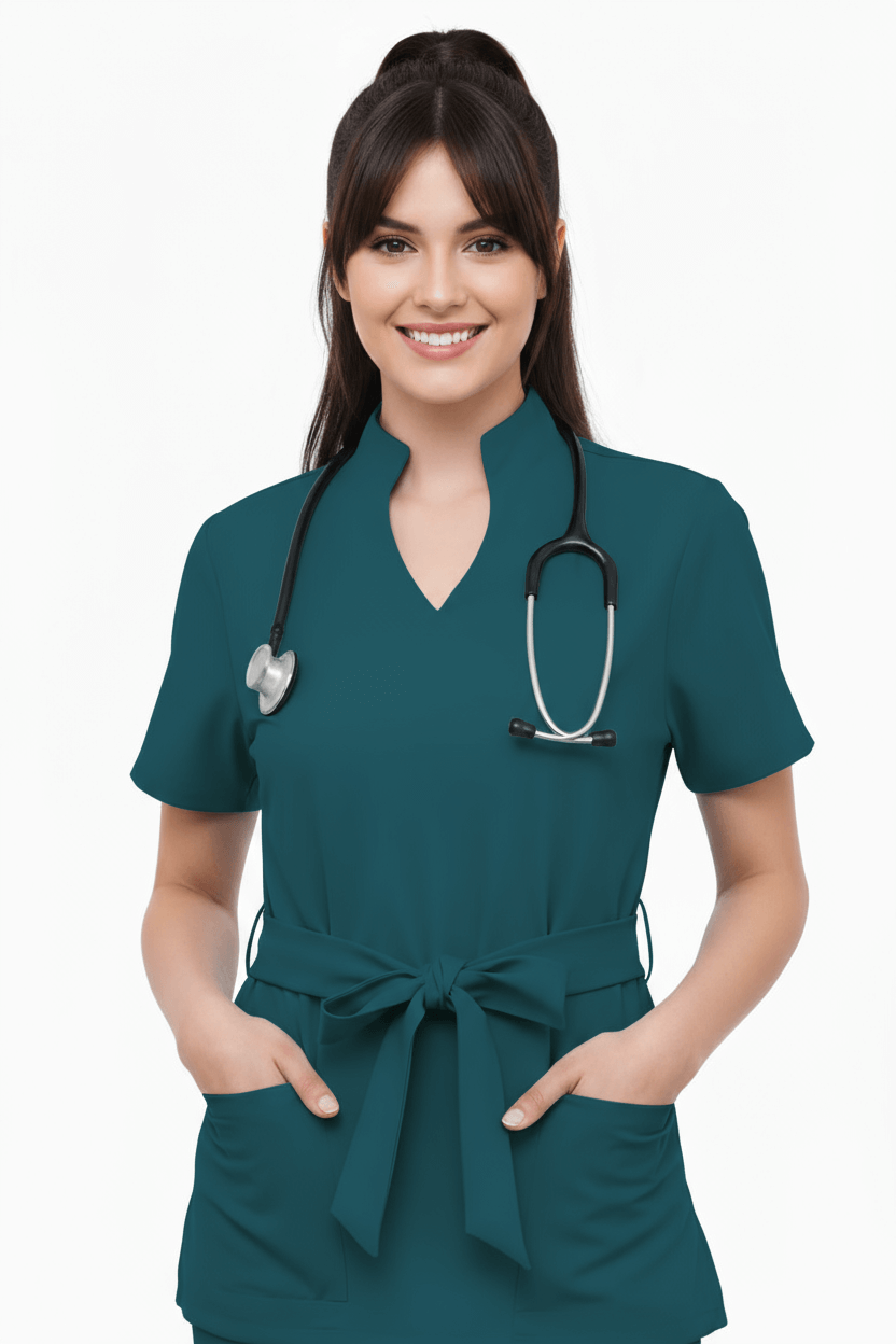 Women’s Nova medical scrubs in Deep Teal. Lightweight, breathable and made for long shifts. Choose your size and fabric.